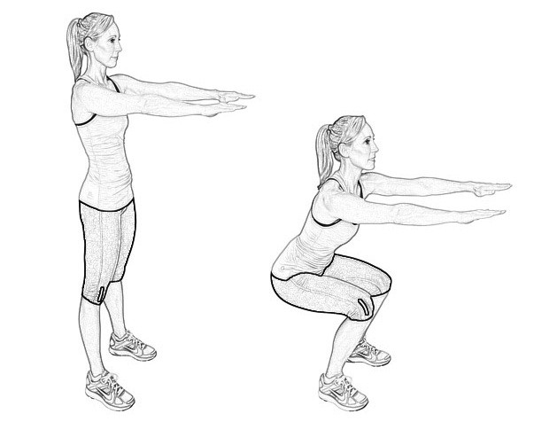 Bài tập 2: Tập động tác squat, 10 lần liên tục.